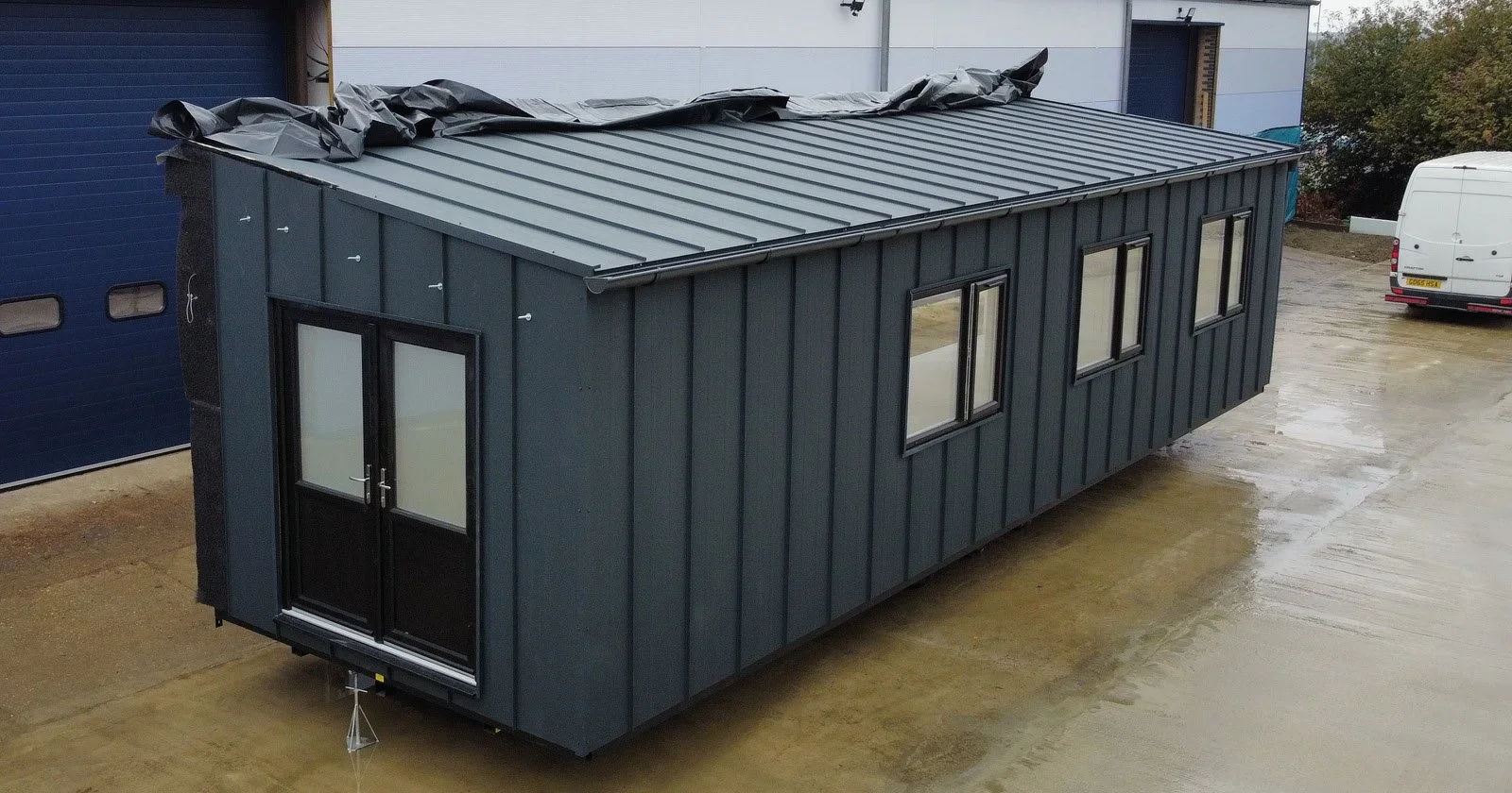 From the small and quaint to the expansive and luxurious, when it comes to modular units, anything is almost possible. Whether you're just looking for something cute like a 23ft x 9ft office with a toilet and kitchenette (As shown below), or you want to go big like our current build a whopping office 78ft x 33'8ft modular unit, which comes complete with toilet amenities, shower room, locker rooms and plenty of offices. Don't let your visions be constrained by normal structures; explore the exciting possibilities of modular office units.